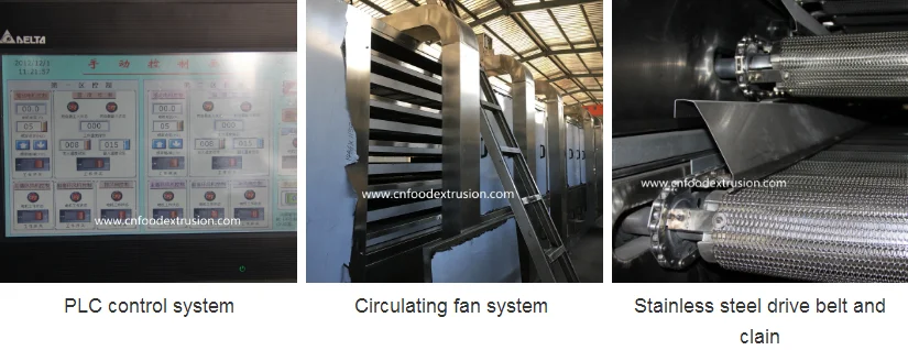 2. It mainly consist of drive motor,stainless steel drive belt, circulating fan, dehumidification equipment, aircraft, PLC control system, etc.