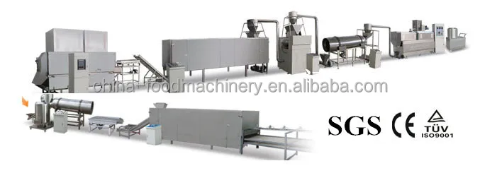 Mixing system---Extrusion system----Cooling system—Flaking system--Drying system—Toasted system---Sugar Spraying system ---Drying system---- Packing system
